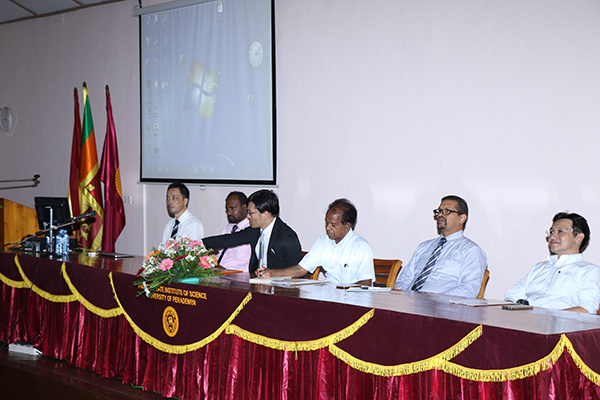Three delegates from the Utsunomiya University, Japan visited the University of Peradeniya on the 04th of September, 2014, and met with the Vice Chancellor of the University of Peradeniya, Prof. AtulaSenartne, on which occasion they signed a Memorandum of Understanding (MoU) between the two Universities. During their visit, they also had an interaction session with the students of the University of Peradeniya to explain about their study programs, student exchange programs and the availability of scholarships. With the signing of the MoU, the University of Peradeniya expects to carry out more collaborative work with Utsunomiya University in the near future.